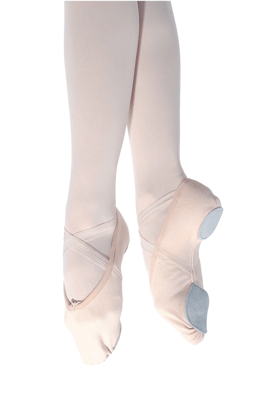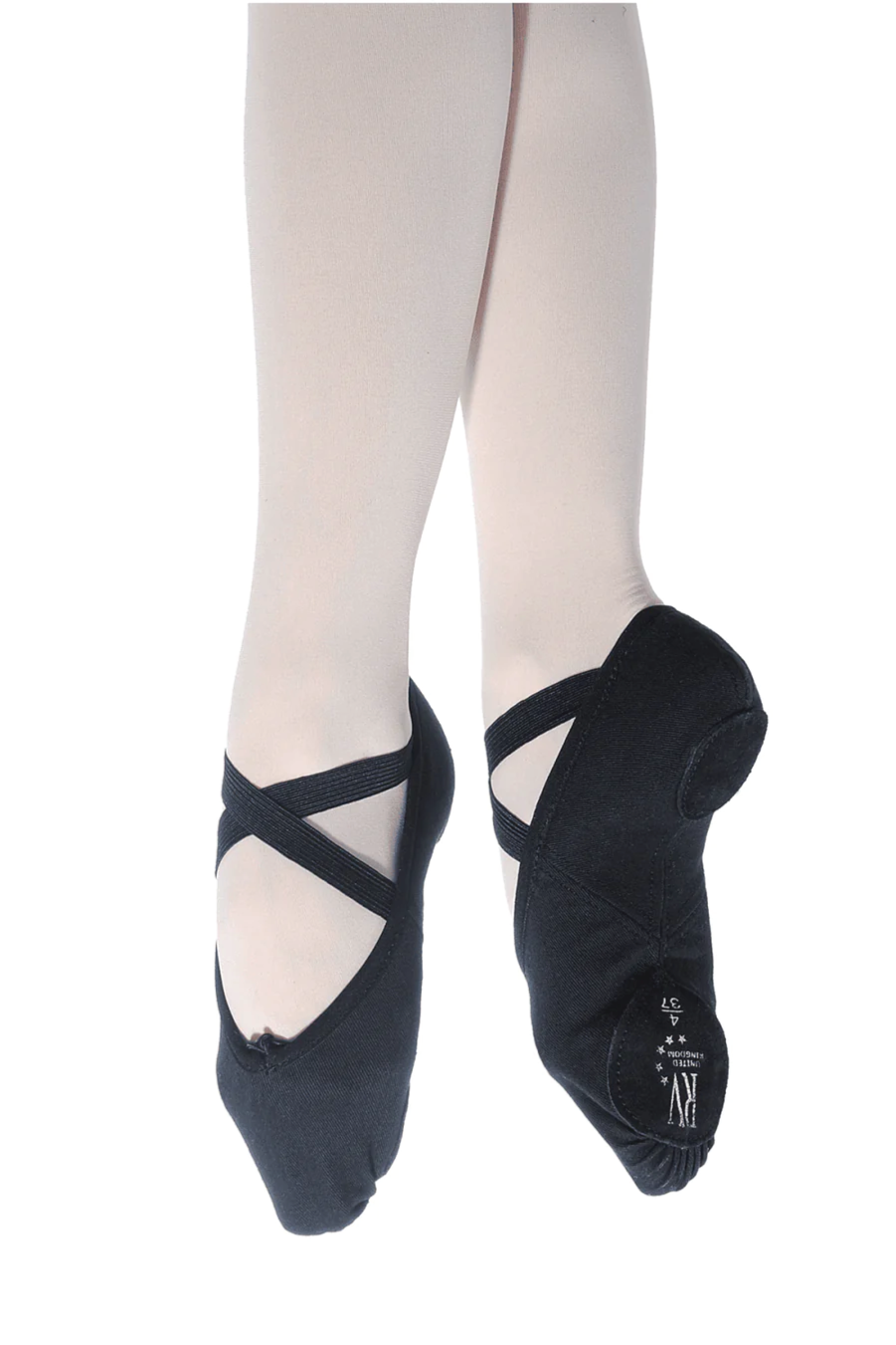 Stretch Canvas Ballet Shoes from Roch Valley. A standout design from the latest Roch Valley collection, this sleek ballet shoe features X-elastics for a secure fit and Suede split soles to provide control during movement and ensure the shoe holds the line of the instep. Available in a choice of 2 colour options, this Roch Valley ballet shoe is created from durable Stretch Canvas which molds to the foot.Fabric: Stretch Canvas