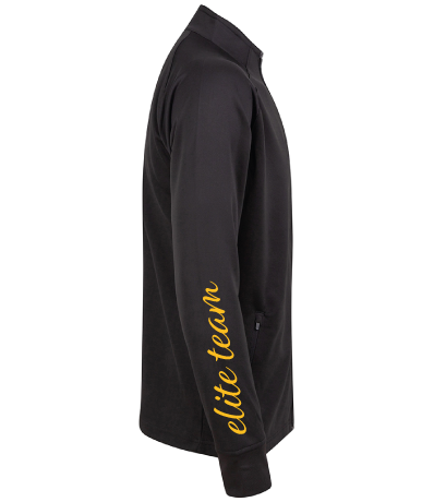 - Full length black zip.