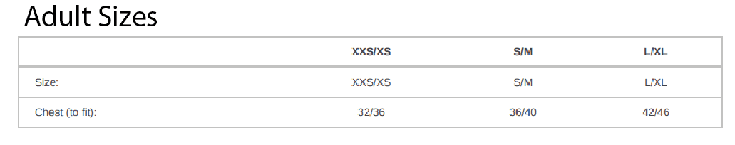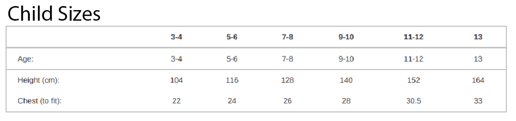Child 3-4, Child 5-6, Child 7-8, Child 9-10, Child 11-12, Child 13, Adult XXS/XS, Adult S/M, Adult L/XL
