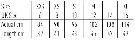 2XS, XS, S, M, L, XL