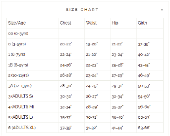0 (3-5 years), 1 (6-7 years), 1B (8-9 years), 2 (10-11 years), 3A (12-13 years), 3 (Adult Small), 4 (Adult Medium), 5 (Adult Large), 6 (Adult XL)