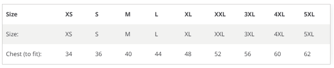 | Size | Adult XS, Adult S, Adult M, Adult L, Adult XL, Adult XXL, Adult 3XL |